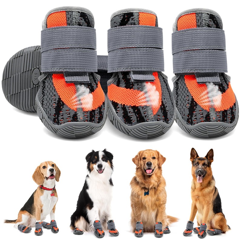Weesiber Dog Shoes, Paw Protection, Pack of 4 Breathable Dog Shoes Outdoor with Non-Slip Sole, 2 Adjustable Velcro Fasteners, Dog Boots for Small, Medium, Large Dogs (Grey, Size 4)