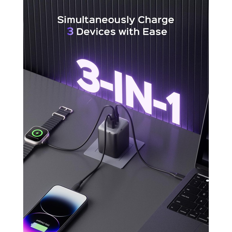 • 100W Hyper-Fast Charging: Connect a single device to get a 100W max chargethat's enough to power up the 14" MacBook Pro (M3 Pro) to 50% in 30 Minutes. And when you connect three devices simultaneously, power will be distributed efficiently between ports to ensure you get the best charge.