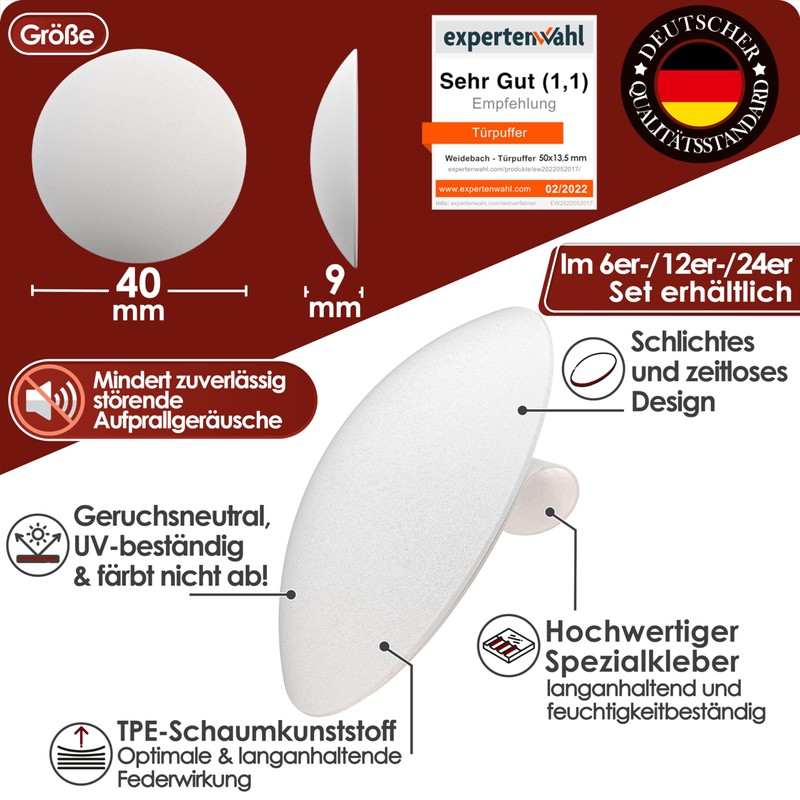 - DAUERHAFTER SCHUTZ VON W?NDEN, M?BELN, TREN: Mit dem WEIDEBACH Trpuffer ist Schluss mit unsch?nen Kratzern, Dellen und sonstigen Besch?digungen. Einfach an der strapazierten Stelle anbringen und nichts kann mehr passieren.