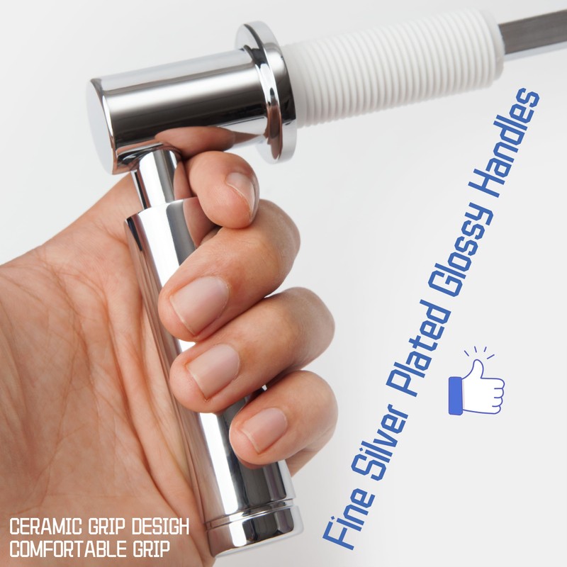 - 【Easy to Install】Just put the handle into the tank hole, sleeve the spacer and screw on the white plastic, and then screw the white long one to the metal rod of the handle.