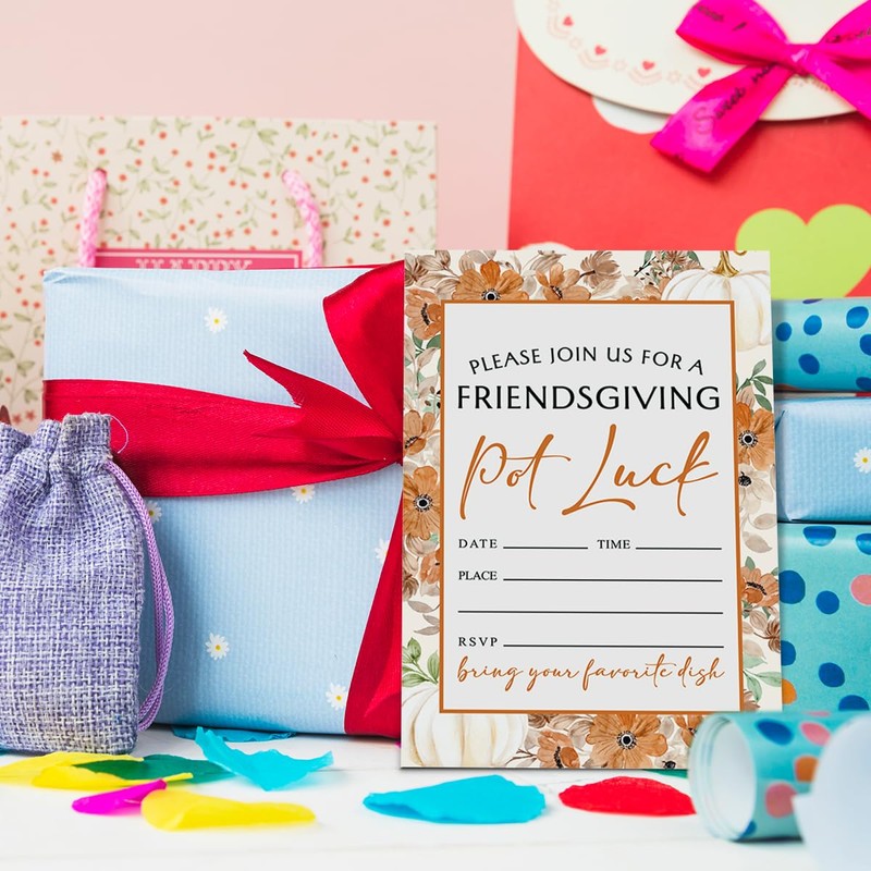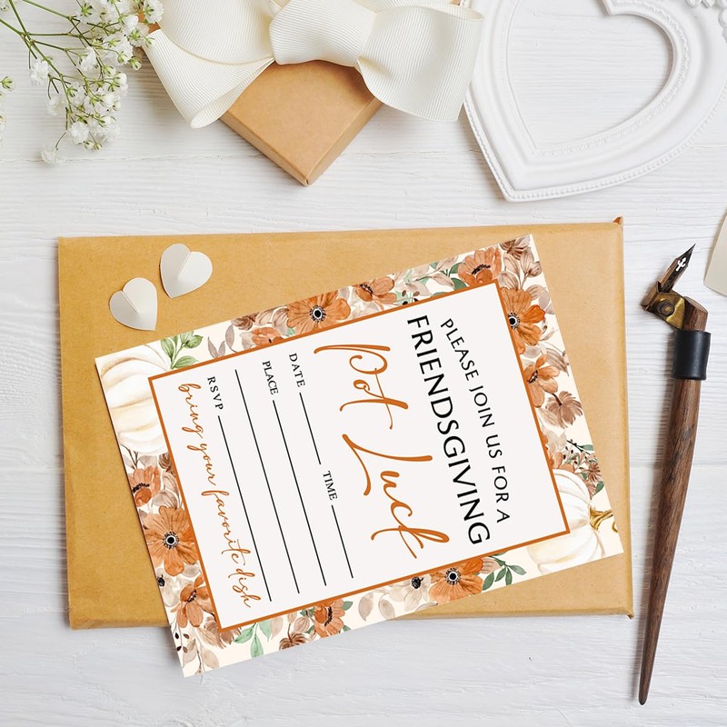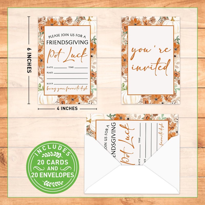 Weifuju Floral Friendsgiving Invitations, Potluck Invitations Thanksgiving Dinner Party Fall Autumn Invite Cards, 20 Invites with Envelopes (4"x6")
