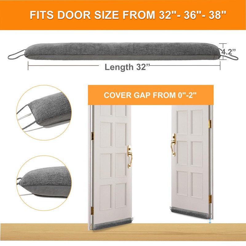 - Easy to Use & Install: totally tool free, just apply the included hook loop strip to your door, then stick the door draft stopper. Measure the gap to choose the right size or consult our customer service. Do not place the stopper too close to the floor for better stickiness.