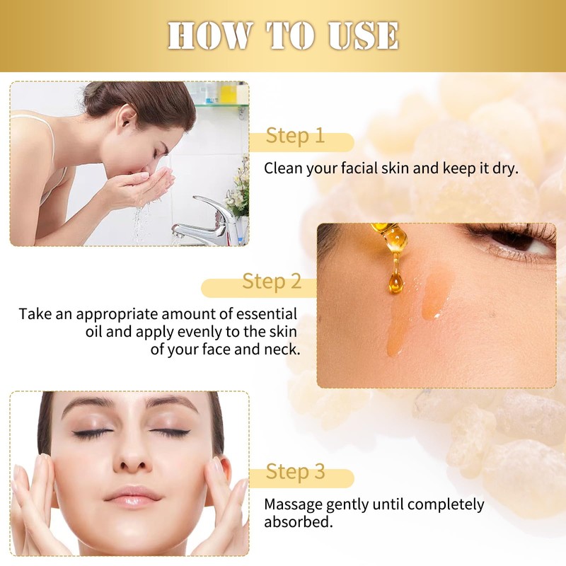 Frankincense resin oil ist für alle hauttypen geeignet und kann als tägliche feuchtigkeitscreme, nachtbehandlung oder feuchtigkeitscreme verwendet werden.