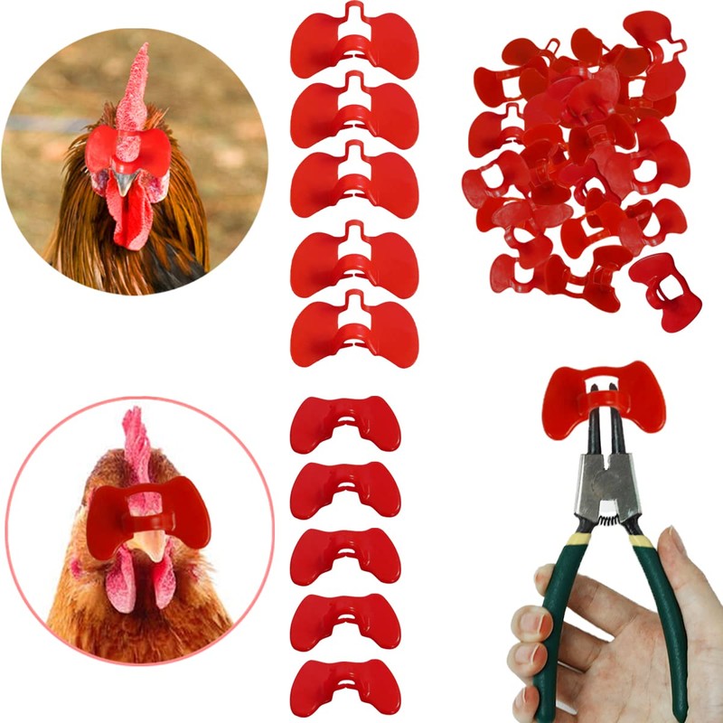 Weilan 70 Pieces Chicken Blinders Pinless Peepers with Plier for Roosters/Hens/Pheasants/Chicks to Stop Pecking(Large+Middle,Red)