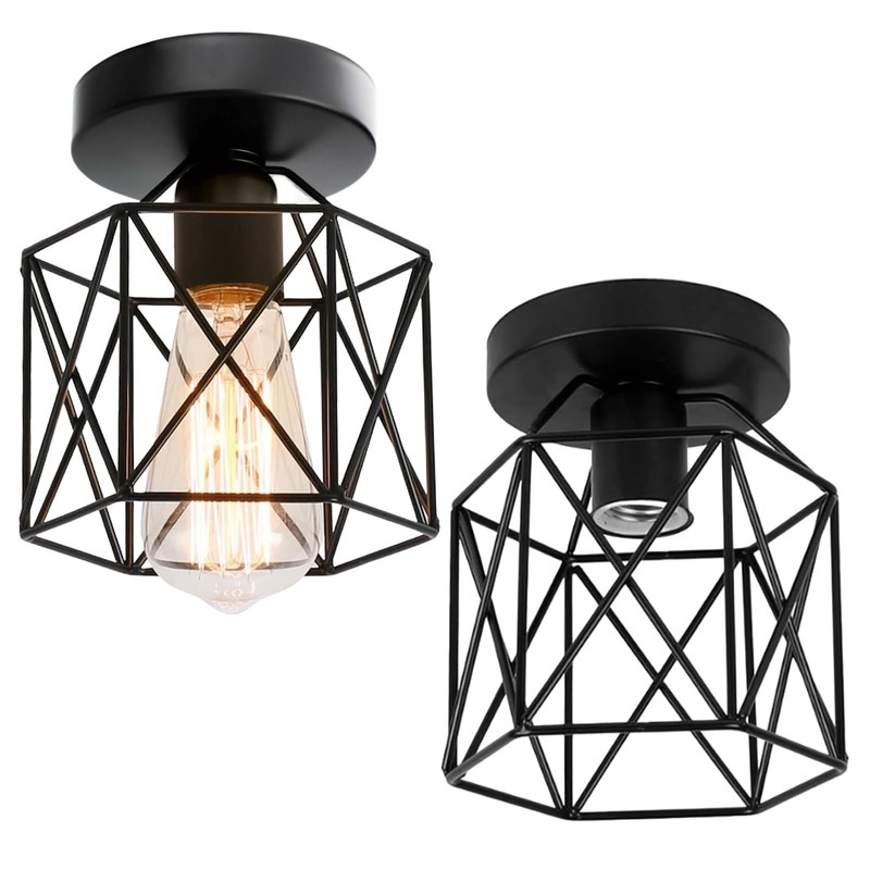 - 【Estilo de granja vintage】 las luces de techo industriales negras están diseñadas en un aspecto clásico de jaula, proyectando sombras únicas en el techo al iluminar, agregando un aspecto de granja vintage en su porche, escalera, entrada, cocina, sala de estar, pasillo, dormitorio, baño. , vestíbulo, garaje, etc.