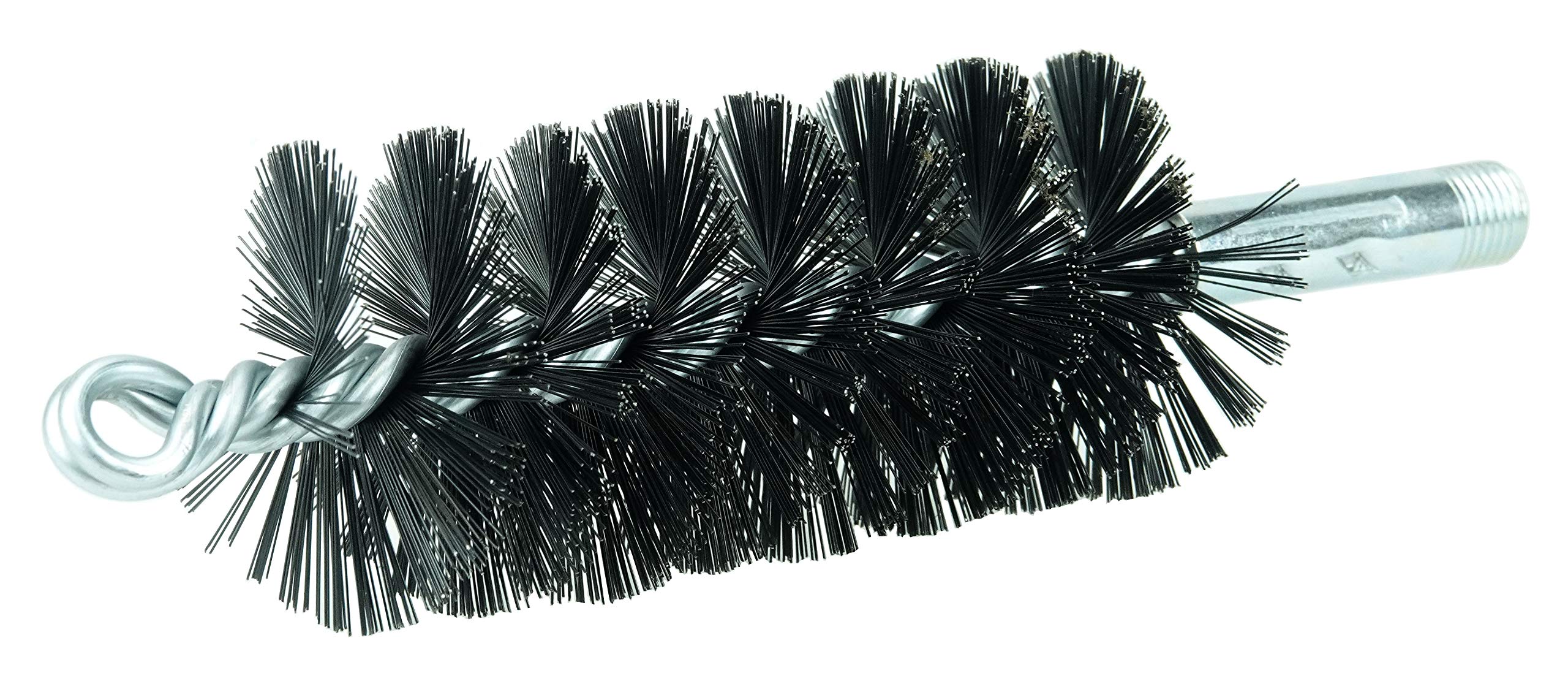 Weiler 44131 2" Single Spiral Flue Brush, .012 Steel Fill- Filled with .012 round wire and fitted with 1/4" x 2" NPT pipe nipple. For internal cleaning of pipes and flues. Flue Brushes are designed and engineered from black oil- tempered wire. Flue brushes are available in single spiral and double spiral construction. Other fill materials and sizes available by special order. Flue Brushes provides increased conformability and long life when: Pipe cleaning, Flue cleaning and Boiler tube cleaning. Engineered and manufactured to maximize performance and minimize operating costs. The use of superior construction, the highest quality materials and the most stringent manufacturing processes deliver the lowest cost-of-use and most consistent performance.