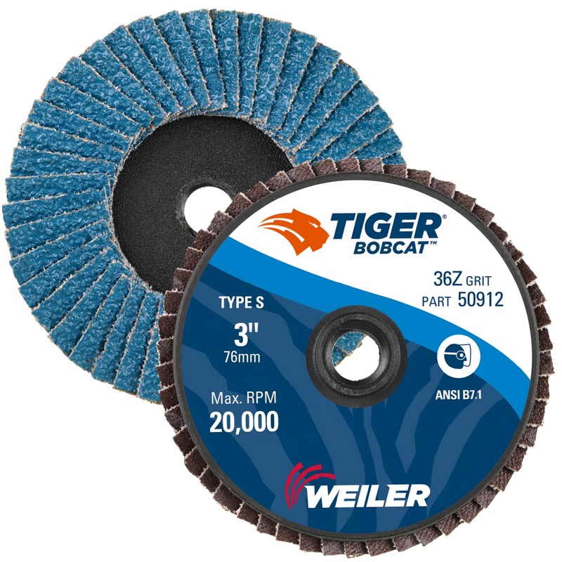Weiler 50912 3" Bobcat Mini Abrasive Flap Disc, Flat (TY27), Type S Mount, 36Z (Pack of 10)