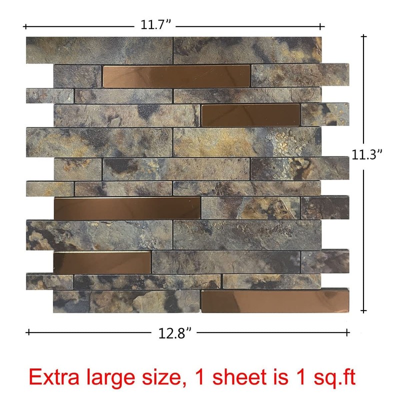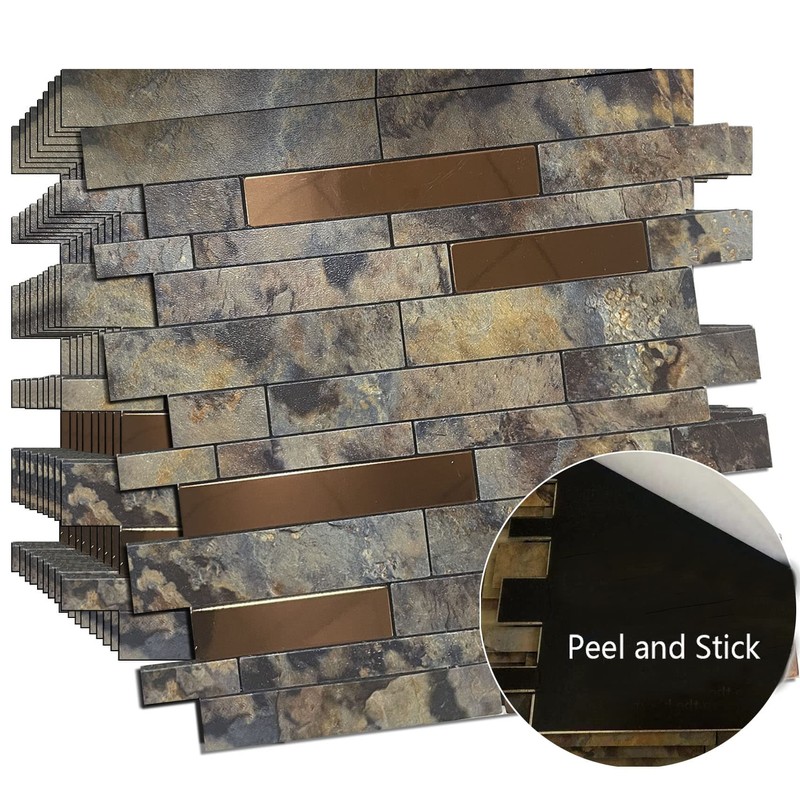 Weimeisc 10 Sheets Peel and Stick Backsplash Tile for Kitchen, Self-Adhesive Mosaic Tile, Stick on Bathroom Vanities,Fireplace Décor, Laundry Table(11.25" X 12.7") (Rusty Stone Pattern)