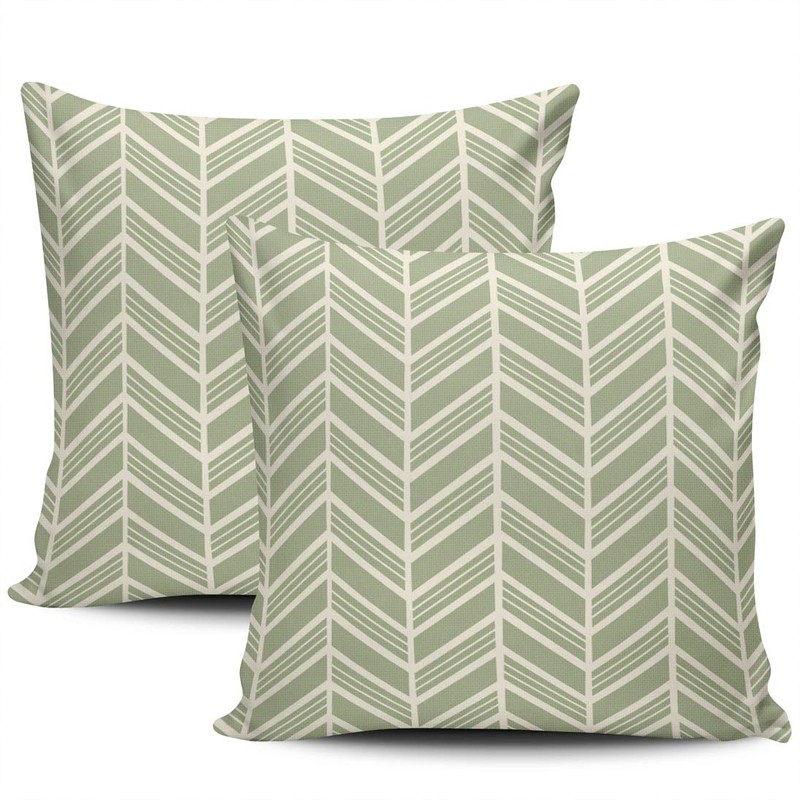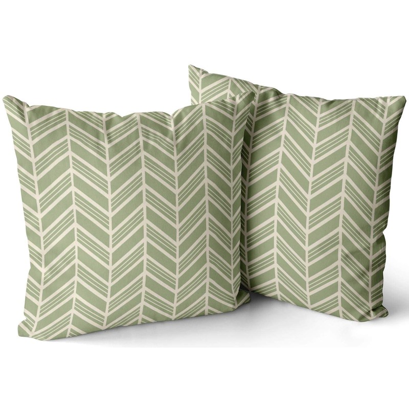 WEINIYA Sofa Decoration Pillowcases 2 Pack Green and White Herringbone Sage Square Cushion Case Throw Pillow Covers 20x20 Inch Double Sides Print