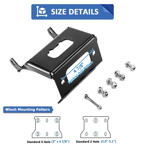 Compatible with Most U.S. Standard Winches & Fairleads (Please check the size before purchasing). Winch Mounting Pattern:①Standard 4-Hole 3"x4 7/8" (76mm x 124mm), ②2-Hole 3.10"(78mm )/3"(76mm), Fairlead Mounting Pattern: 4 7/8" (124mm)