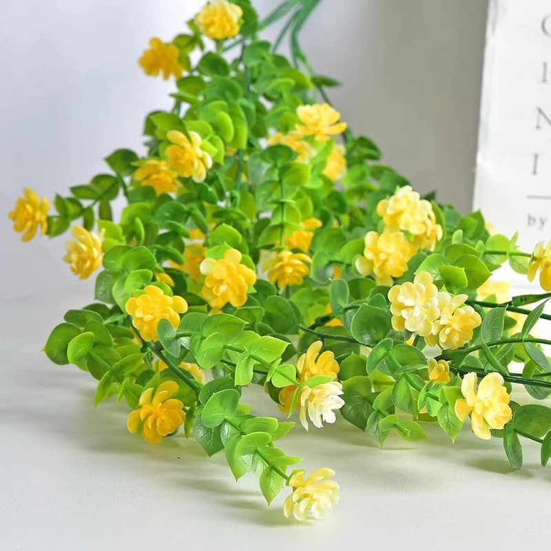 WEISPARK Artificial Hanging Flowers, 9pcs Fake Eucalyptus Vine Faux Flower Greenery Garland Plastic Plants for Indoor Outdoor Wall Garden Wedding Home Party Decor (9pcs Yellow)
