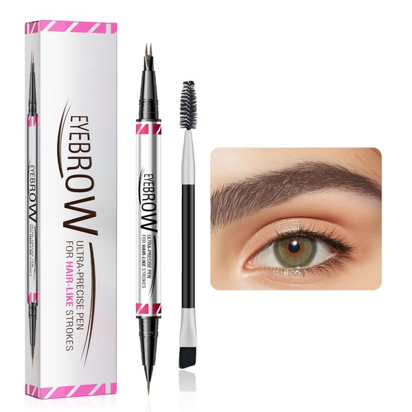 Weixinbuy Weixinbuy Microblading Eyebrow Pen Long-lasting, 4D Waterproof Eyebrow Pencil 2-in-1, Liquid Eye Brow Pencil Dual-Ended with Micro-Fork-Tip and Precise Brush-Tip (Brown Eyebrow Pencil)