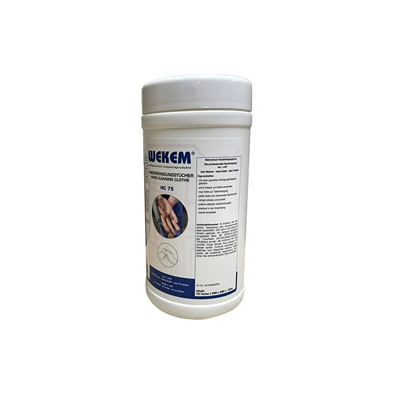 - HC-75 hand cleaning cloths are designed for use in industry, crafts, assembly, service vehicles, etc. These 2-phase cleaning cloths remove greases, oils, greases, paints, adhesives and much more from hands and water-compatible surfaces.