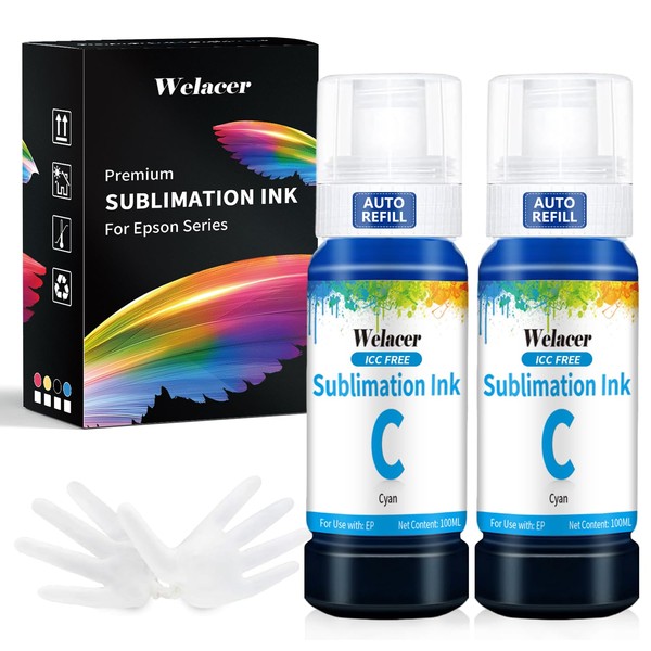Welacer 200ML Cyan Sublimation Ink Autofill Bottles Refill for Epson ET-2803 ET-4800 ET-2800 ET-2850 ET-2400 ET-2850 ET-4850 ET-1500 etc. Inkjet Printers Heat Press Transfer on Mugs T-Shirt Tumblers