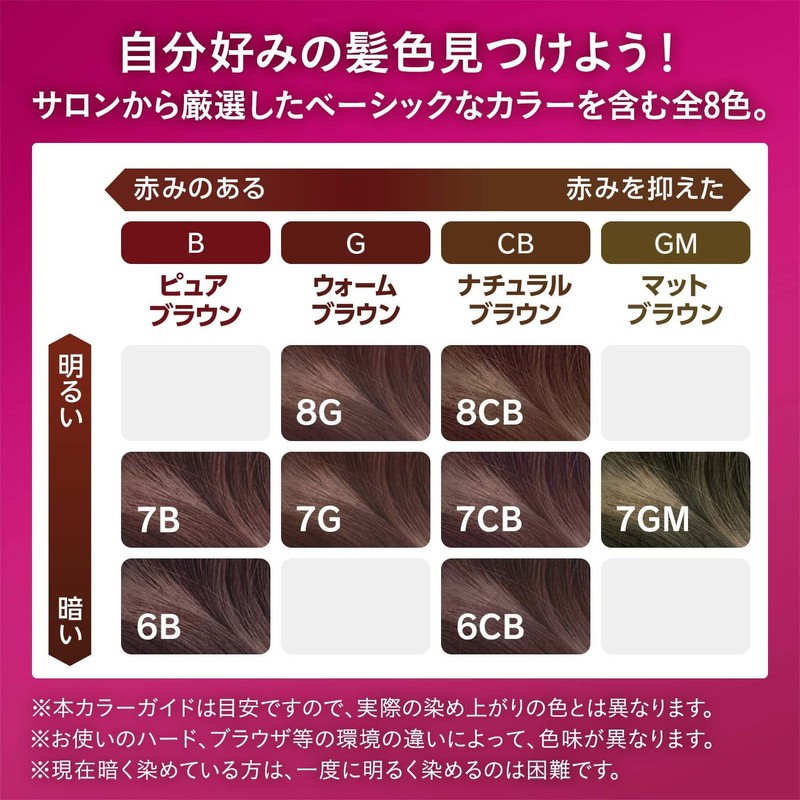 - Women's Gray Hair Dye, Quasi Drug, More Bright, Warm Chestnut Color (8G), A Additive, 2.0 oz (60 g), B Additive, 2.0 fl oz (60 ml), Essence 0.2 fl oz (5.5 ml), Semi-Long (Length of Shoulder) Approx. 1 Dose