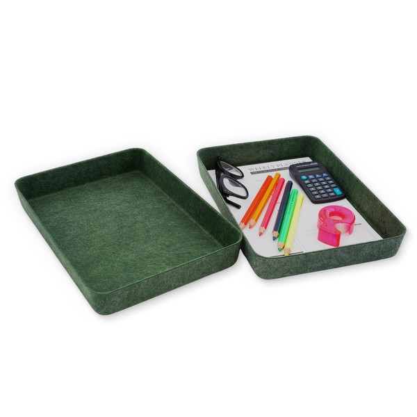 - 【Package content】 2 piece set Desk drawer organizer trays for papers documental files, quiet luxury forest green color drawer organizer bins, more economical and affordable for home office dorm storage and organization