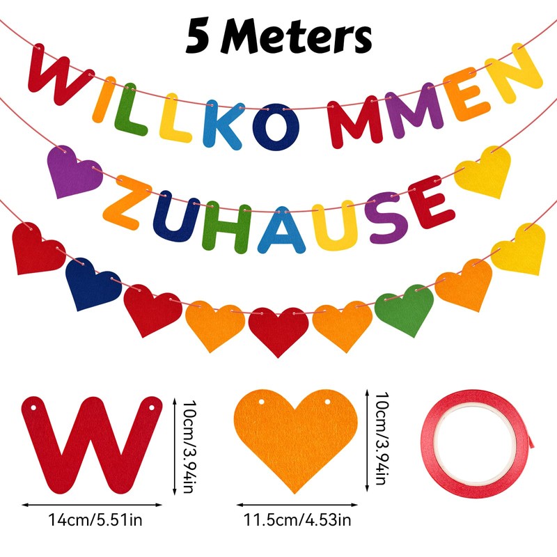 - Beautiful design: our warm welcome garland with rainbow colours letters and heart design, beautiful appearance and bright colours, which is eye-catching and make your party more unique and fun