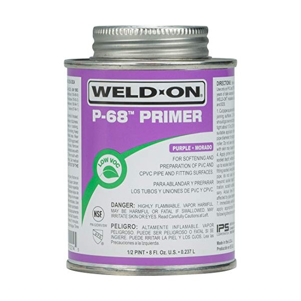 WELD-ON IPS 10214 Purple P-68 Primer for PVC and CPVC Pipes, Non-Bodied, Fast Acting Primer, 1/2 Pint with Applicator Cap, 16 Fl Oz (Pack of 1)