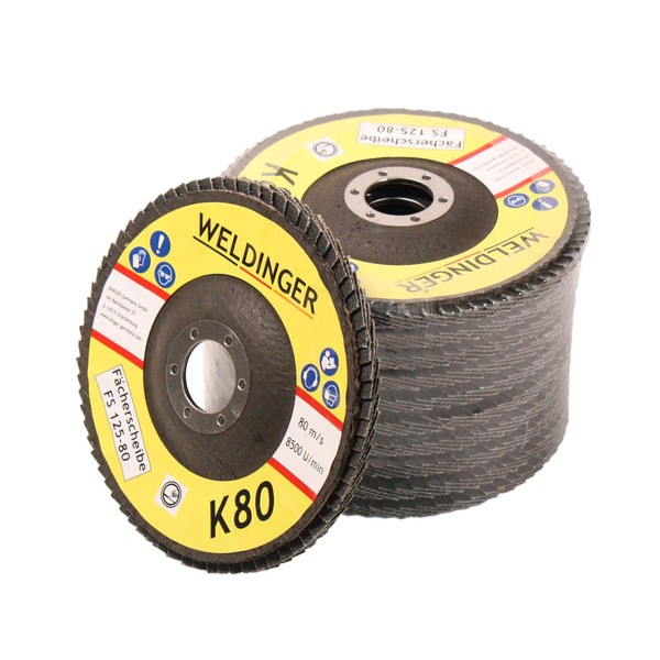 WELDINGER Serrated Disc 125 x 22.23 K80 Abrasive Mop Discs Pack of 10