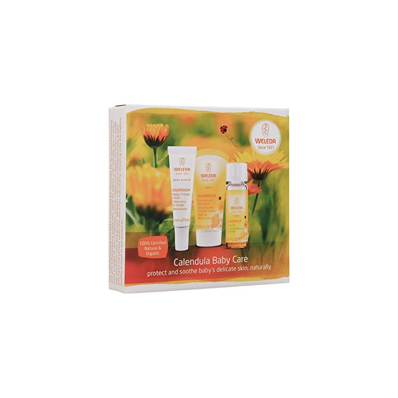 - Each pack contains: Calendula Shampoo and Body Wash, Calendula Oil, Calendula Nappy Change Cream (mini sizes)