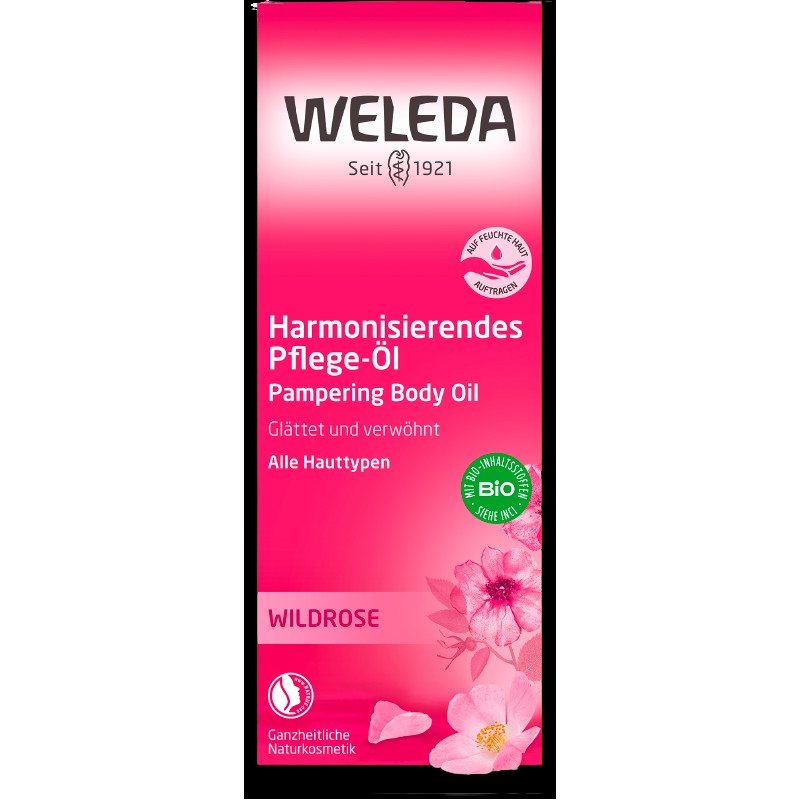 Leaves skin soft, supple and velvety smooth. Contains harmonising wild musk rose oil, enriching jojoba oil and sweet almond oil to nourish and protect skin. Ideal for an all over face and body massage. Weleda Wild Rose Body Oil pampers and harmonises the skin and the senses. The delicate oil maintains the skin's natural beauty and glow, while the floral fragrance of Damask Rose harmonises body and spirit. Beneficial to dry and mature skin.