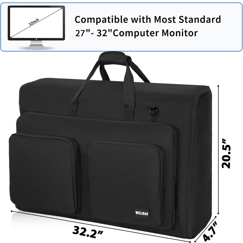 - 【Product Size】WELIDAY Monitor/TVs Transport Case, Padded creative professional Tote Bag designed to 27"- 32" Monitors/Screens. NOTE: Please place the screen and stand separately. SIZE: 32.2*4.7*20.5 inches