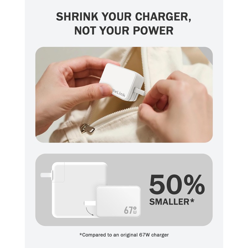 - What You Get: WeLink 67W GaN Wall Charger (3Ports), 5 ft 100W USB-C to USB-C cable, welcome guide, our worry-free 12-month warranty, and friendly customer service.