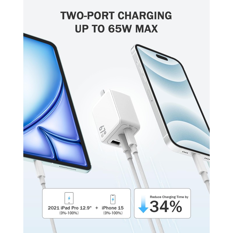 - 65W Max Two-Port Charging: Whether you use both USB-C ports or a combination of USB-C and USB-A ports, enjoy fast and efficient charging with a maximum output of 65W.