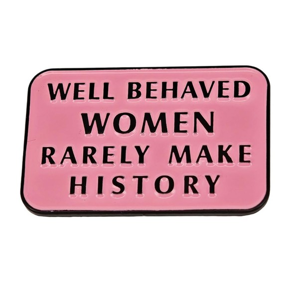 - Unique Design: This provocative novelty pin features a bold pink background with the phrase 'Well Behaved Women Rarely Make History' in contrasting black text.