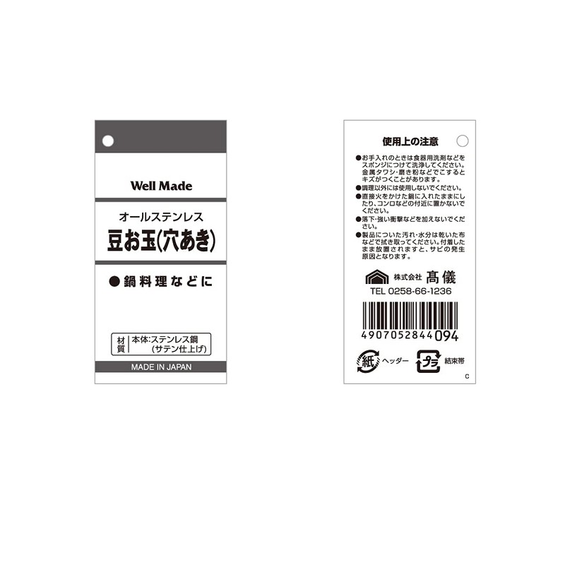 日本製 高儀 Well Made オールステンレス豆お玉 穴明 タグ
