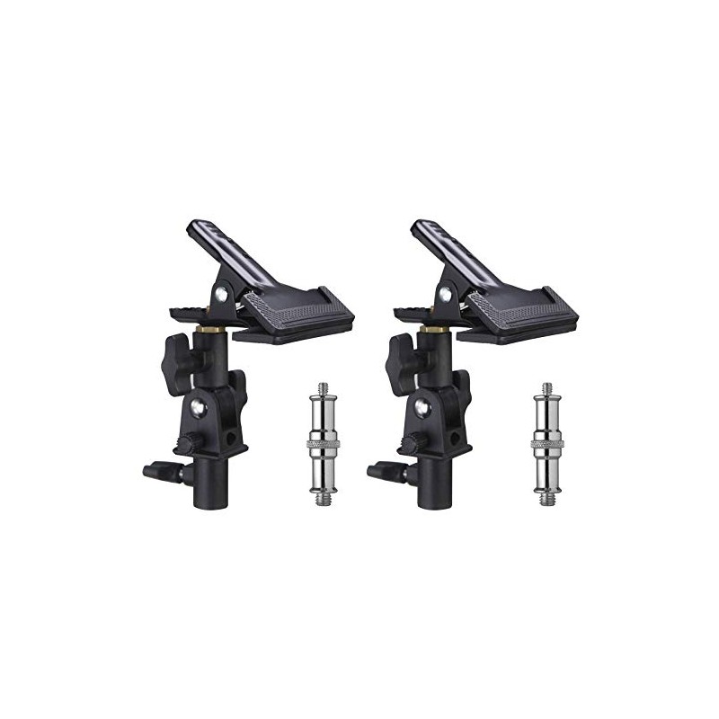 WELLAMKING 2PCS Photo Studio Reflector Holder 180 Rotation Heavy Duty Tripod Metal Clamp Holder with 1/4" & 3/8" Screw Adapter for Photo Studio Screen Backdrop Umbrella Light Stand