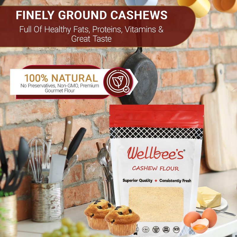 Wellbee's Cashew Flour - Gluten Free Nut Flour - Finely Ground Powder For Baking - Non GMO - No Additives - SCD Approved (1 LB.)