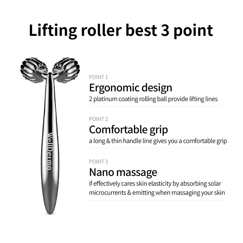 WellDerma Face Lifting Dark Silver Roller - Ergonomic Lifting Roller for Smal...