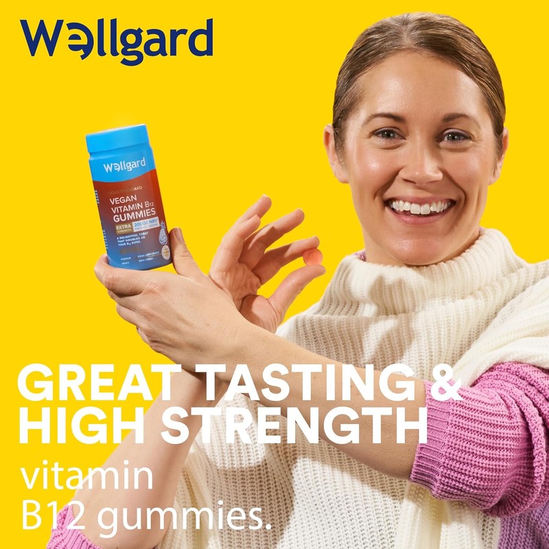 Wellgard Vegan Vitamin B12 Gummies – High Strength B12 Supplement for Energy & Immunity, UK Formulated B12 Gummies