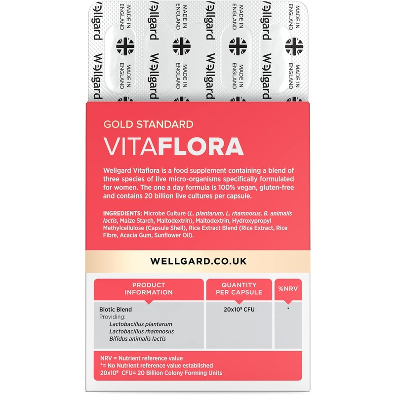 Wellgard Vitaflora Probiotics for Women | Scientifically Proven Bio Cultures to Support Women’s Intimate Flora | 30 Vegan Capsules | Promotes Digestive, Vaginal & Urinary Health | Made in the UK
