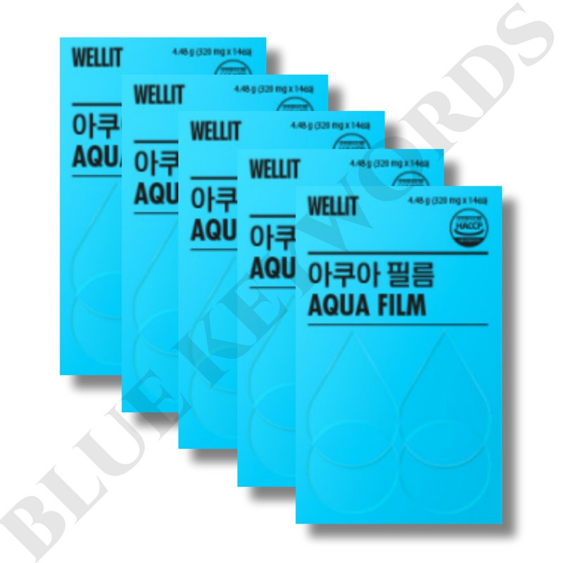 Wellit Aqua Film Low Molecular Hyaluronic Acid 320mg x 14 sheets x 5 boxes, 10 weeks supply / 웰릿 아쿠아필름 저분자 히알루론산 320mg x 14매 x 5박스 10주분