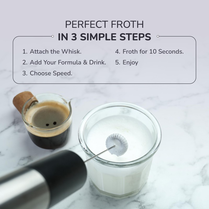 • Froths in Seconds: Get your colostrum smoothie, matcha, or coffee ready the moment you want! This frother want works within 10 seconds, faster than you can say "latte." The noise-free handheld frother blends lump-free beverages within the blink of an eye.