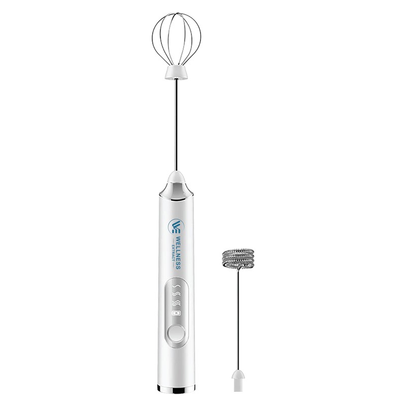 The Wellness Extract Multi-Speed Rechargeable Milk Frother is your all-in-one blending solution for all kinds of drinks and juices. Whether you're stirring Bovine Colostrum, mixing a match, preparing protein shakes, or brewing a creamy coffee, this sleek handheld frother delivers fast, clump-free results every time. Designed with versatility in mind, the electric frother features three adjustable speed settings (low, medium, and high) and two detachable whisks so that you can enjoy full control of power and functions. From delicate baby formula to thick colostrum, you can prepare everything with a single press. Unlike traditional frother, this one features a long-lasting 4W lithium-ion battery. Forget AA batteries and last-minute replacements. Just charge via USB (cable included), and you're good to go for days or even weeks, depending on your usage. The noise-free motor froths even the most complex drinks in just 10 seconds, helping you get your drink ready even before you've said the name. It's compact and travel-friendly and fits easily in your kitchen drawer, work desk, or gym bag. Wherever you go, take your favorite power to mix, froth, and live your day without compromise.