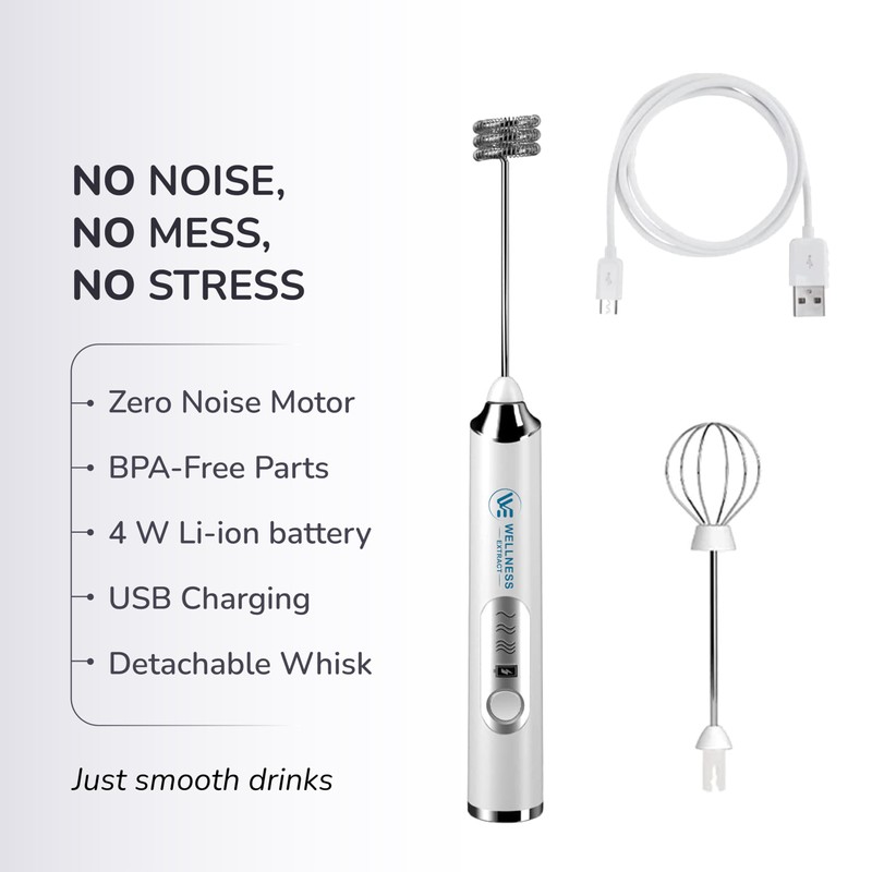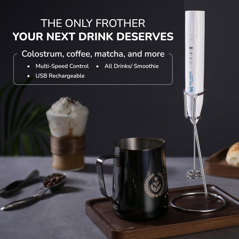 Wellness Extract Multi-Speed Rechargeable Electric Milk Frother, Li-ion Battery Powered – Certified Safe, Ideal for Coffee, Matcha, Protein & Colostrum