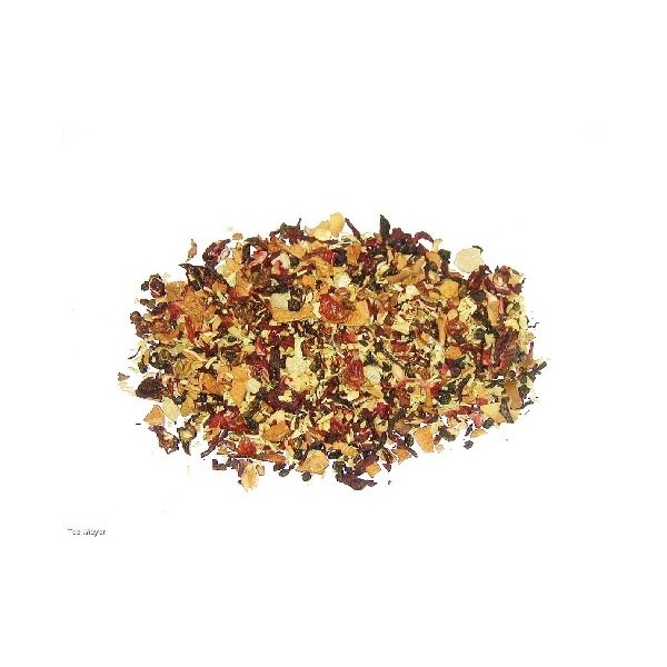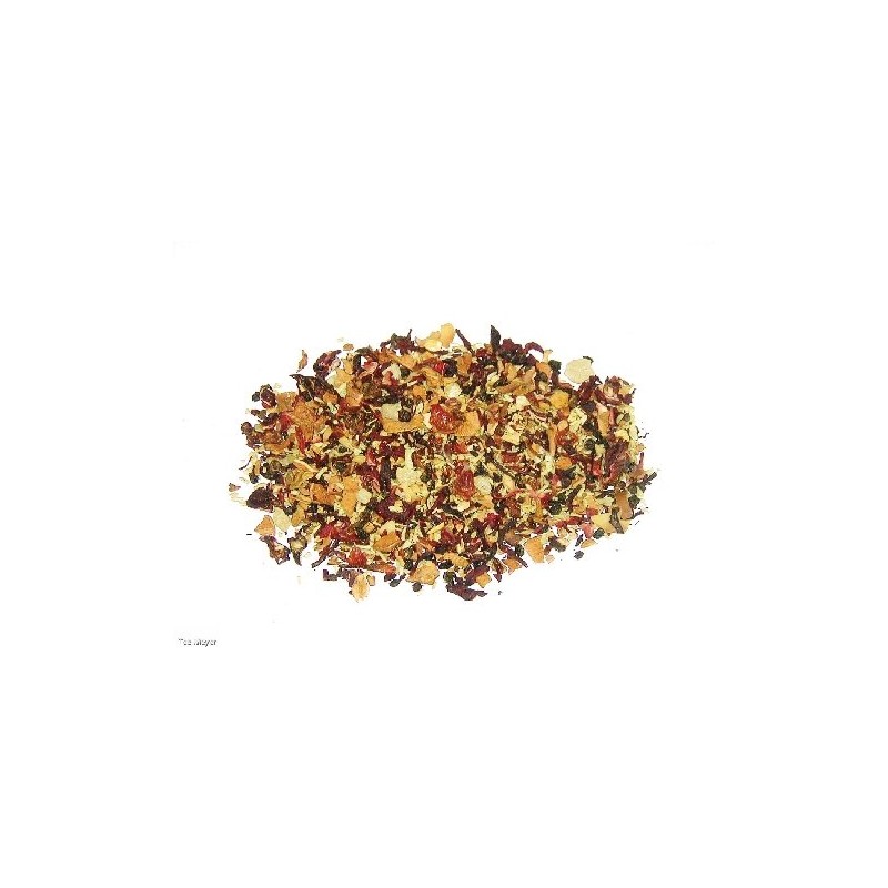 Ingredients: apple pieces, hibiscus, rose hip peel, pineapple pieces, coconut chips, grated coconut, ginger, curry, flavouring. Brewing time: 15 minutes. Quantity/cup: 1 tsp. Preparation recommendation: always pour with bubbly, lime-free boiling water