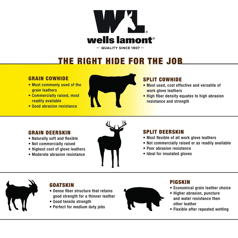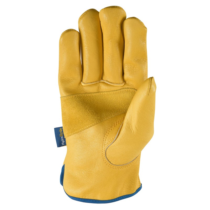 Keep your hands dry and protected while you're working on DIY projects, construction, driving, or riding your motorcycle. Hydra Hyde leather technology seals out moisture so hands stay dry and protected under wet conditions, while still allowing your hands to breathe. The ball and tape style wrist closure allows you to adjust how tight the glove fits to your wrist. This helps hold gloves in place while also keeping out dirt and debris reinforced leather palm patch offers extra grip and durability. Gunn cut and keystone thumb design provide comfort and flexibility. Wells Lamont - stubborn about quality since 1907.IDEAL FOR: construction, demolition, farming, landscaping, maintenance, ranching, and more!