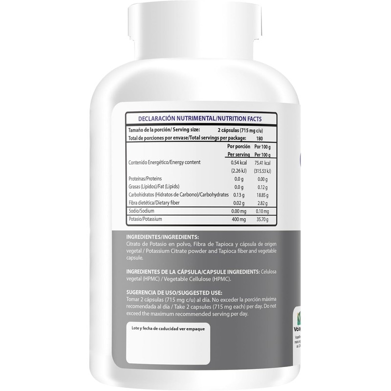 • Alta calidad y absorción: Cada cápsula contiene 400 mg de citrato de potasio, una forma altamente biodisponible.