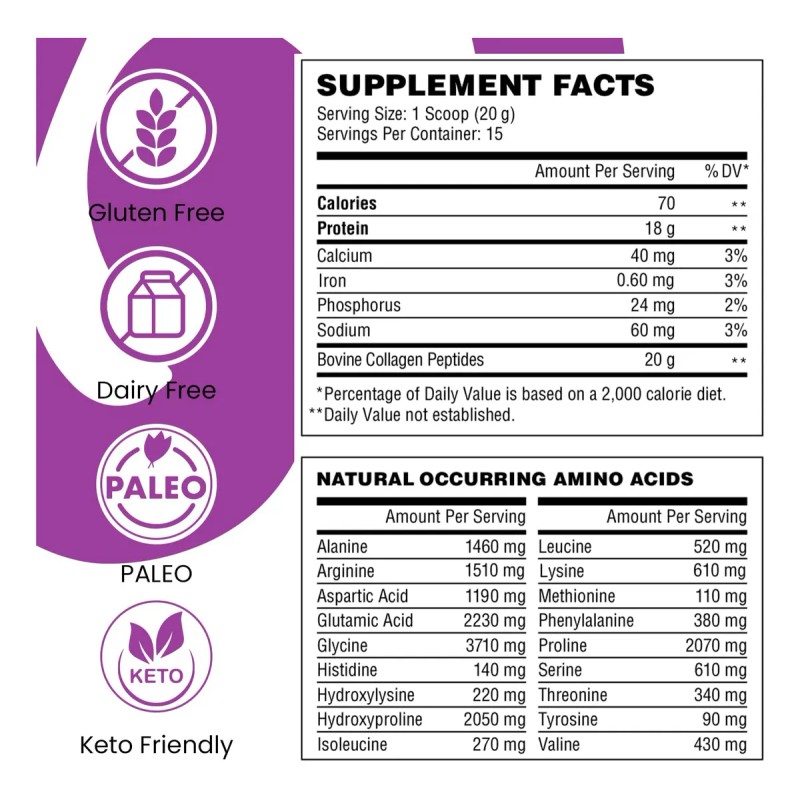 Deléitate con la bondad de 20,000mg de colágeno péptidos, provenientes de vacas alimentadas con pasto, un verdadero tesoro de la naturaleza. 🐄 Piensa en los campos verdes y exuberantes donde estas vacas pastan libremente, absorbiendo la energía del sol y transformándola en un colágeno rico en nutrientes esenciales para tu bienestar. ¡Es como darle a tu cuerpo un festín de superalimentos verdes! 🌿