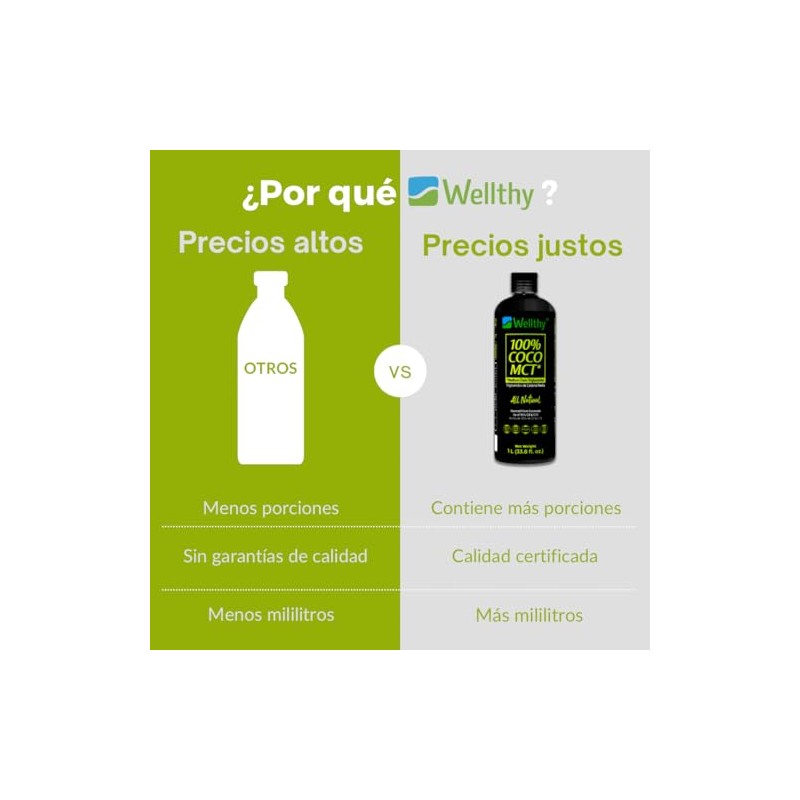 WELLTHY - Wellthy MCT Oil 1 Litro, 66 Porciones, Ácido Caprílico 100% Puro y Natural de Coco, KETO y Paleo Safe, Energía y Concentración, 0g de Azúcar, Gluten Free, NON GMO, Vegan, Libre de Soya, Certificado Internacionalmente, Origen Filipino.. 🚀 Producto más vendido con miles de clientes satisfechos. Diseño ergonómico y funcionalidad excepcional. ⭐ Miles de reseñas positivas. Ideal para quienes buscan lo mejor en calidad y estilo. Producto auténtico con satisfacción total asegurada. ¡No te quedes sin el tuyo y aprovecha esta oportunidad única!