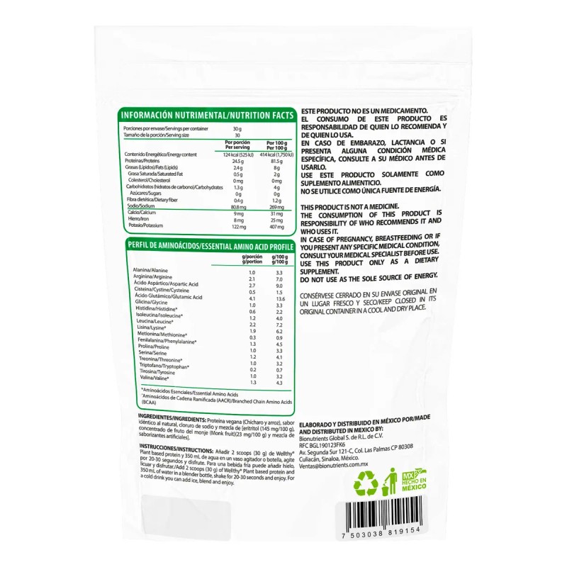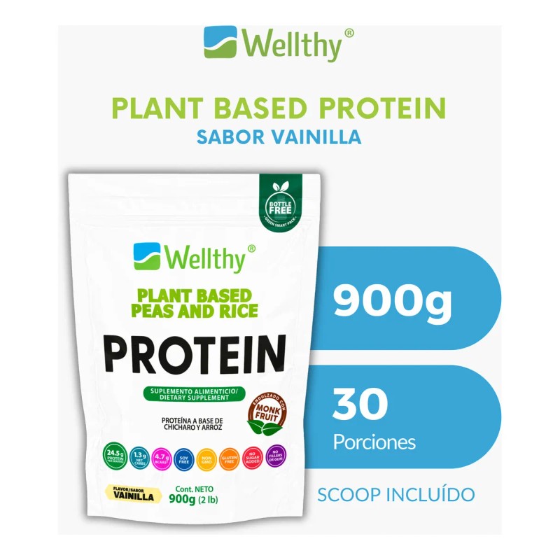 💪🌱 Wellthy Plant-Based Protein Vainilla | Chícharo + Arroz | 900g | 30 Porciones 🍨