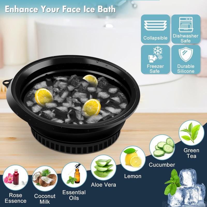- 【Benefits of Ice Face Bowl】--- Simply add ice and water to this facial plunge bowl for an instant cooling treatment. The foldable ice bath face bowl provides multi-functionality for tightening pores, relieving puffiness, and invigorating your complexion, it is a convenient face wash basin for your daily skincare routine.