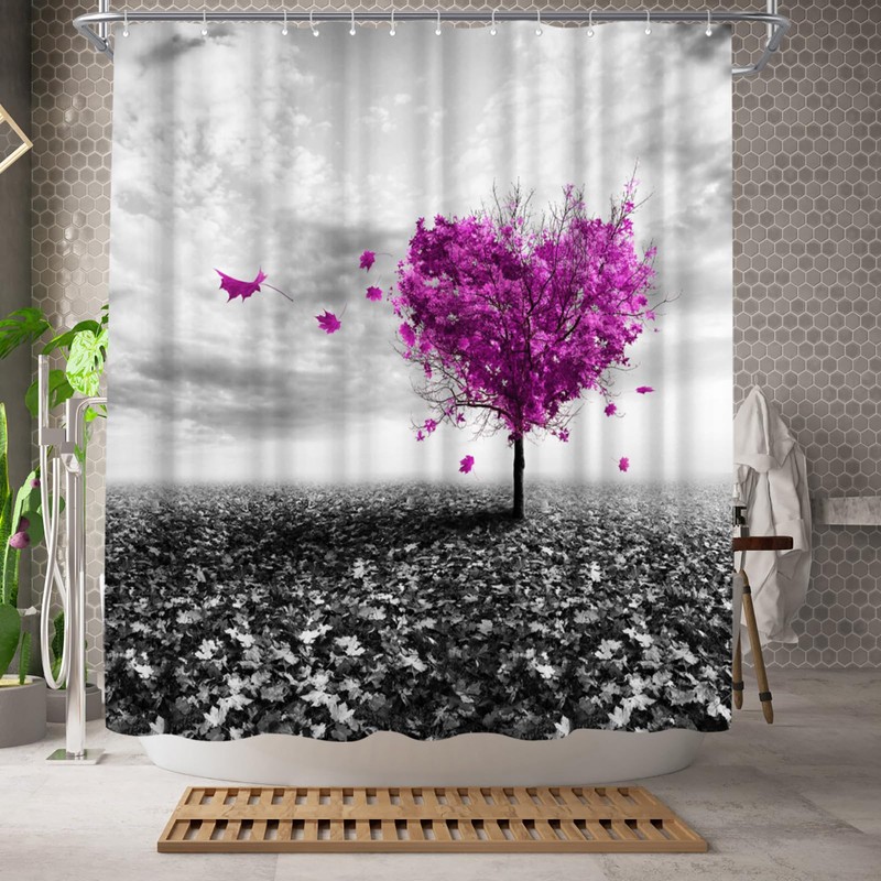 WELMECO Tree Shower Curtain Nature Heart Shaped Tree Shower Curtain 72x72inch Polyester Fabric Bathroom Decor (Purple)