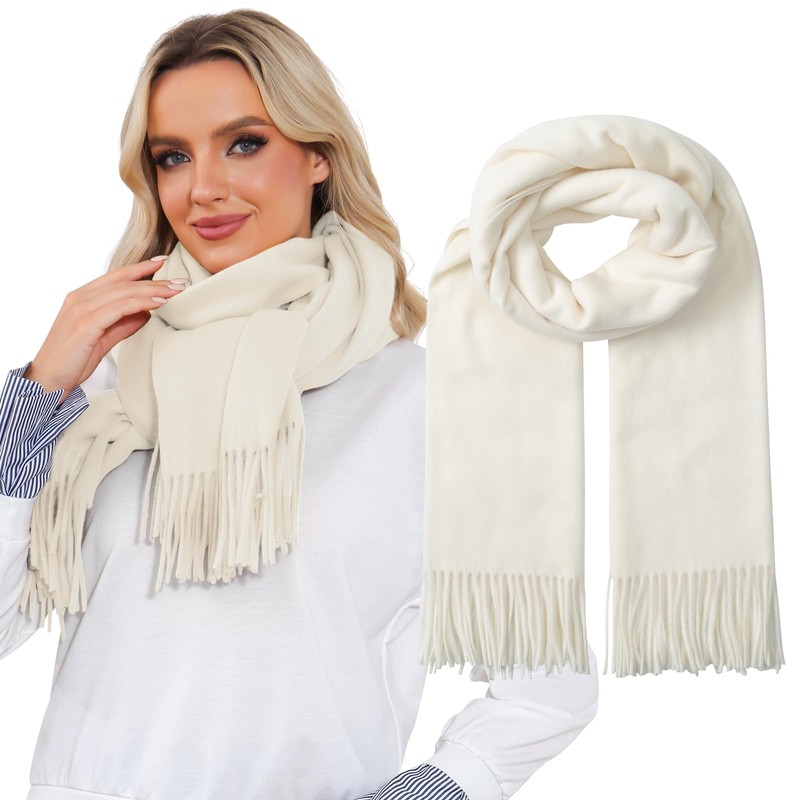 WELROG Women's Cashmere Scarf with Tassels Soft Large Winter Scarf for Women 200 x 70 cm, cream white
