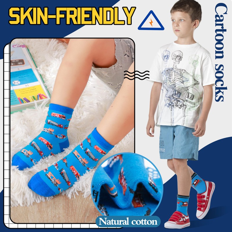 - 【5 Size Options】Choose from five different sizes of these non-slip socks: 6-12 months, 1-3 years, 3-5 years, 5-8 years, and 9-14 years. Kids within these age ranges can enjoy the adorable and functional design of these funny socks all year long. These cartoon socks with grips make perfect gifts for active boys, infants, toddlers, and kids.