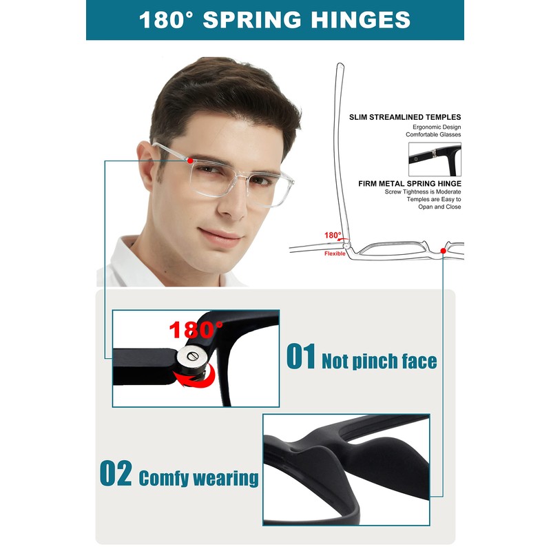 - LIGHT WEIGHT READERS FOR MEN 1.75: Ultra-light frame with 180° flexible spring hinge makes reading glasses for men durable & scratch-resistant and solves the problem “Screws Fell Out/Springs Fell Off/Arms Snapped Off”, our men’s readers are designed to withstand the daily elements with Comfort Spring Hinges and Sturdy Tight Screws.